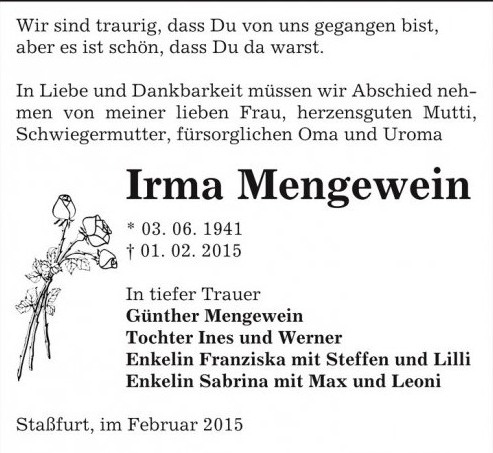 schweren Schmerz mindern aber meine vielen Verwandten und Bekannten,